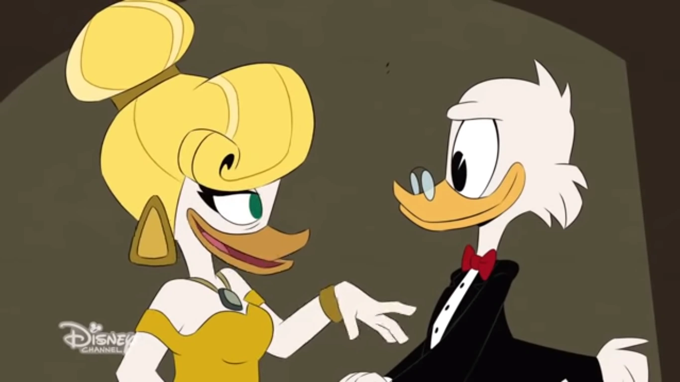 Όπως και στα κόμικς, οι Σκρουτζ και Γκόλντυ συναντήθηκαν κατά τη διάρκεια του Πυρετού του Χρυσού στο Γιούκον. Όμως εδώ, οι δυο τους αναζητούσαν τη θρυλική Χρυσή Λιμνοθάλασσα της Λευκής Αγωνίας που κρύβονταν μέσα στις σπηλιές κοντά στον Χείμαρρο της Αγωνίας. Όταν βρέθηκαν αντιμέτωποι με το Μαμούθ (που ήταν ζωντανό αντί κατεψυγμένο πτώμα όπως στα κόμικς), παγιδεύτηκαν σε έναν παγετώνα για πέντε χρόνια και ο χάρτης τους για το θησαυρό σκίστηκε στα δύο από το θηρίο. Όταν η Γκόλντυ αποψυχθήκε, ο Σκρουτζ έμεινε πίσω και έγιναν ανταγωνιστές τα επόμενα χρόνια, με μια δεύτερη αναζήτηση για την Χρυσή λιμνοθάλασσα να είναι η πρώτη τους συνάντηση τα τελευταία χρόνια.