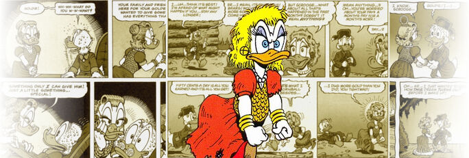 Περνάνε χρόνο μαζί και αγαπάει ο ένας τον άλλον με το δικό του τρόπο. Όμως, κανένας από τους δυο τους δεν ανοίγεται ή εμπιστεύεται τον άλλο με αποτέλεσμα ο Σκρουτζ να φύγει από το Ντώσον δίχως την Γκόλντυ. Μπορεί όταν, συναντιούνται ξανά μετά από πολλά χρόνια να έχουν αλλάξει και γεράσει αλλά ειδικά ο Σκρουτζ έχει πολύ δυνατά αισθήματα για την Γκόλντυ. Τόσο δυνατά που επίτηδες χάνει έναν αγώνα χρυσού και ξεγράφει το χρέος της προς αυτόν.