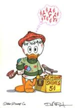 Πίσω στην Γλασκώβη, στο φτωχικό σπίτι των Μακ Ντακ ο Φέργκους κατασκευάζει ένα κασελάκι λουστραδόρου, για να το χαρίσει στον Σκρουτζ τη μέρα των γενεθλίων του, επιθυμώντας να τον βοηθήσει να κάνει ένα νέο ξεκίνημα και να δώσει στη γενιά των Μακ Ντακ την παλιά της δόξα. Έτσι, την επόμενη μέρα ο δεκάχρονος, πλέον, Σκρουτζ αρχίζει να γυρίζει τους δρόμους της πόλης του, χωρίς να καταφέρνει να βρει κάποιον πελάτη.