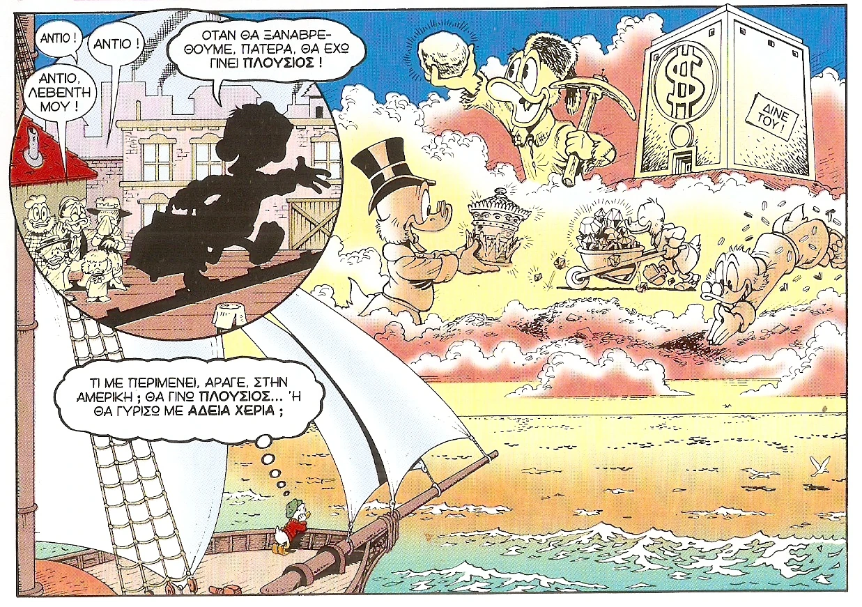 Δεν σκόπευα να καταπιαστώ με αυτό το εγχείρημα τόσο νωρίς. Ίσως, ύστερα από δέκα ή δεκαπέντε χρόνια, όταν θα είχα πετύχει μια απολύτως απαραίτητη βελτίωση στο εκνευριστικά λεπτομερές στυλ του σκίτσου μου. Ίσως τότε να σκεφτόμουν να ξεκινήσω να γράφω μια τέτοια ιστορία. Όμως, τα σχέδια κάποιων εκδοτικών οίκων που έχουν τα δικαιώματα για τους ήρωες του Ντίσνεϋ ανάγκασαν τους εκδότες της Gladstone, τις εκδόσεις Egmont και εμένα να προχωρήσουμε στην δημιουργία μιας μεγάλης σειράς με την ιστορία της ζωής του πιο πλούσιου παπιού του κόσμου.