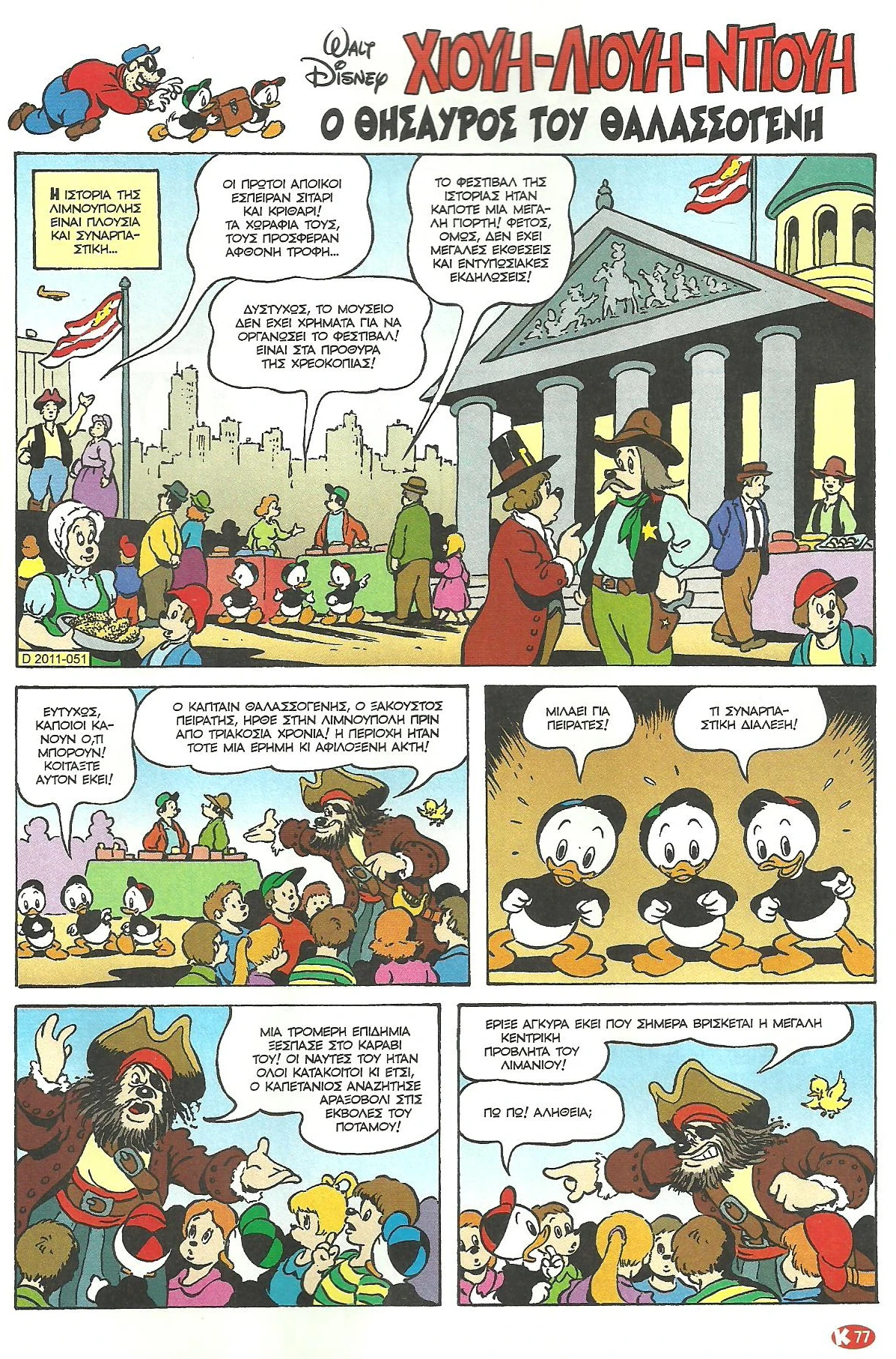 Οι Χιούη, Λιούη και Ντιούη Ντακ έχουν πάει στο φεστιβάλ ιστορίας που διοργανώνει το μουσείο της πόλης, το οποίο όμως έχει χάσει πια την αίγλη του, αφού είναι στα πρόθυρα της χρεοκοπίας. Εκεί ακούνε έναν άνδρα μεταμφιεσμένο σε πειρατή να μιλάει για τον θρύλο του Θαλασσογένη, ενός κουρσάρου που είχε υποτίθεται προσαράξει στην Λιμνούπολη και έκρυψε σε ένα νησάκι τον θησαυρό του.