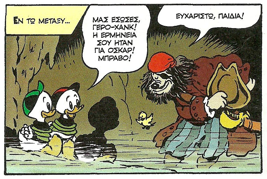 Ψάχνοντας με έναν ανιχνευτή μετάλλων εντοπίζουν το κουτί των Μουργόλυκων, που πιστεύουν ότι τα παιδιά έχουν πάρει την λεία τους. Οι Χιούη, Λιούη και Ντιούη καταλαβαίνουν τότε ότι πραγματικά οι ίδιοι έχουν βρει τον θησαυρό του Θαλασσογένη, που δεν είναι άλλος από τον Χανκ, που τόσα χρόνια αναζητούσε τον θησαυρό του, έχοντας ξεχάσει που τον είχε κρύψει.