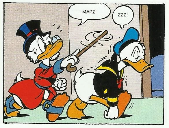 Μόλις βλέπουν ότι οι Χιούη, Λιούη και Ντιούη έχουν τα λάφυρα τους τρέχουν να τους πιάσουν και ένα ξέφρενο κυνηγητό ξεκινάει, με τα παιδιά να τρέχουν να σώσουν τον θησαυρό. Φτάνουν σε μια σπηλιά, όπου όμως οι κλέφτες τους προφταίνουν και τους εγκλωβίζουν.