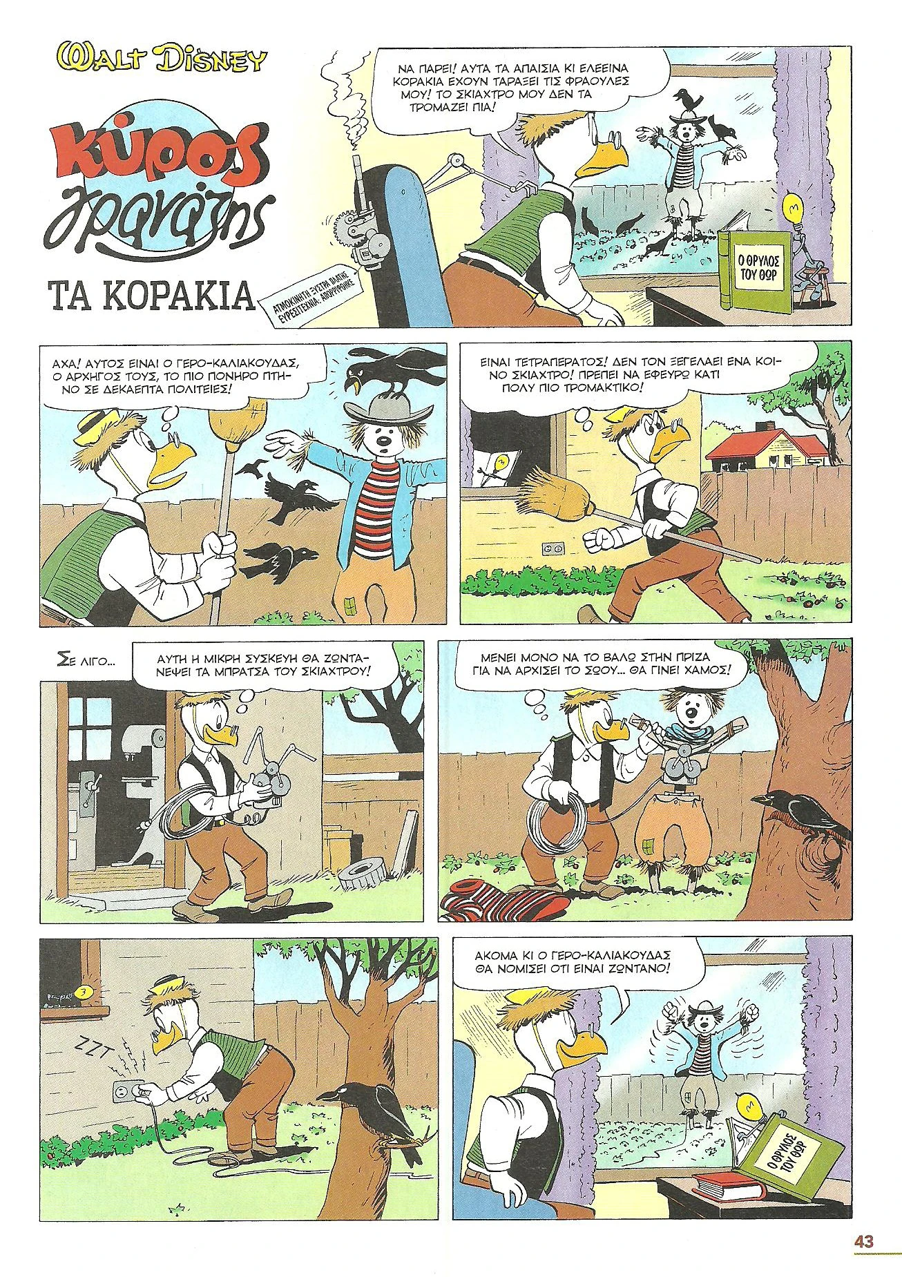 Ο Κύρος Γρανάζης βλέπει ορδές κορακιών στον κήπο του, να τρώνε από το μποστάνι του και συνειδητοποιεί ότι το σκιάχτρο του δεν τα φοβίζει καθόλου. Αρχηγός των πτηνών είναι ένα ιδιοφυές και πανέξυπνο κοράκι, που δεν χάφτει τόσο εύκολα τα παλιομοδίτικα κόλπα του εφευρέτη.