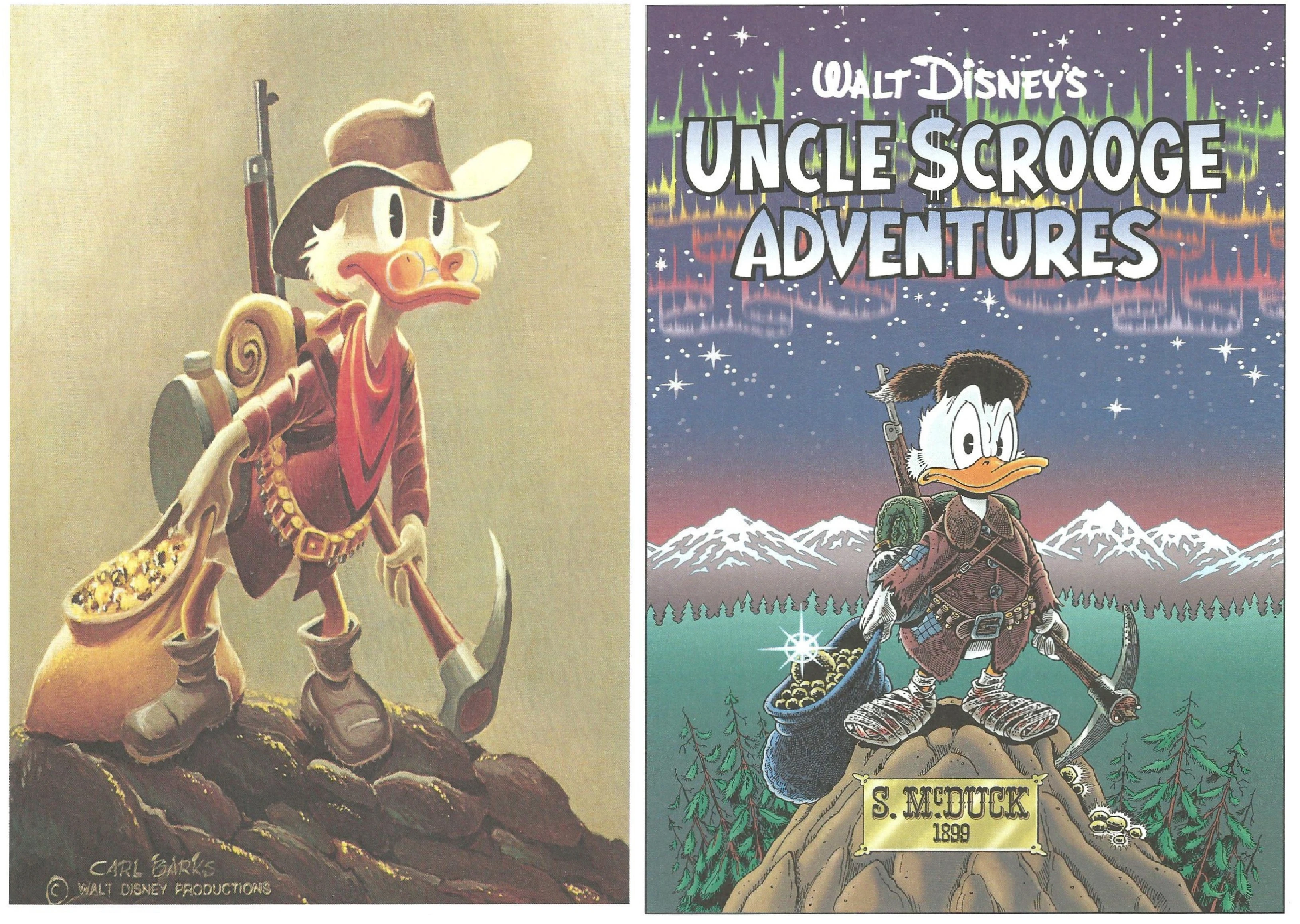 Στην ιστορία του Ντον Ρόσα υπάρχουν πολλές αναφορές στο παρελθόν του Σκρουτζ Μακ Ντακ, πολύ πριν ο ίδιος καλλιτέχνης γράψει τον μνημειώδη Βίο και την Πολιτεία του παπιού. Αρχικά, υπάρχει μια σημαντική λεπτομέρεια στο Τελευταίο Έλκηθρο για το Ντώσον, την οποία τελικά ο επίγονος δεν έβαλε και στον Βίο και την Πολιτεία.