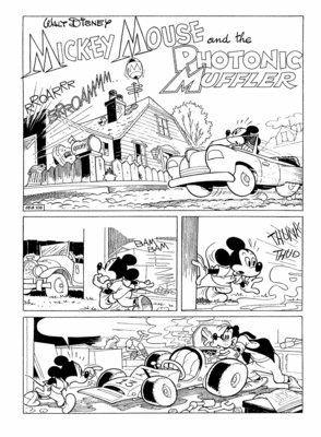 Την ιστορία Φωτονική Επιτάχυνση είχε αρχικά δημιουργήσει ο Ρομάνο Σκάρπα την δεκαετία του 1980. Εκείνη την περίοδο, παράλληλα με την δουλειά του στο ιταλικό περιοδικό Topolino, ο μεγάλος καλλιτέχνης συνεργαζόταν και με την αμερικανική εκδοτική κόμικς Western Publishing, που παρήγαγε ιστορίες για την διεθνή αγορά.
