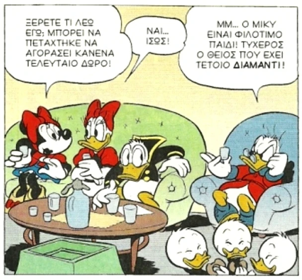 Δίπλα από το κείμενο του Μαρτίνα υπάρχει ένα σχέδιο του Σκάρπα, του Ντόναλντ, που είναι ακριβώς ίδιος με τον Ντόναλντ που είχε σχεδιάσει ο Ουώλτ Κέλλυ στο εξώφυλλο του αμερικανικού περιοδικού Walt Disney’s Comics & Stories 118, που κυκλοφόρησε τον Ιούλιο του 1950.