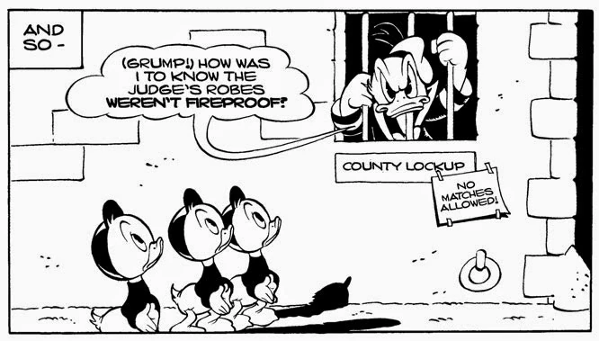 Ο Πυρομανής είναι μια ιστορία του Καρλ Μπαρκς, που στη χώρα μας δημοσιεύτηκε στο ΚΟΜΙΞ 51, η οποία λογοκρίθηκε όταν πρωτοδημοσιεύτηκε, στην Αμερική. Το τελευταίο καρέ της ιστορίας δεν είχε διασωθεί καλά και έτσι ο Ντάαν Γίππες το ξανασχεδίασε όπως το βλέπετε δίπλα.
