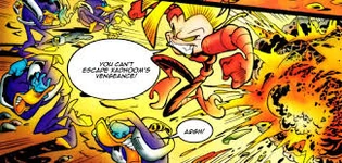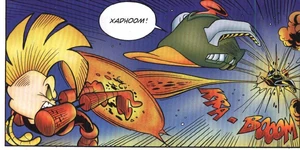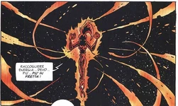 Ταυτόχρονα, ήταν απασχολημένη με ένα πείραμα με το οποίο θα έλεγχε την ύλη και την ενέργεια και, αν το πείραμα πετύχαινε, ο λαός της θα είχε ένα λαμπρό μέλλον. Για να πραγματοποιήσει το πείραμα, έπρεπε να πάει στον Κυανό Αστέρα. Το πείραμα πέτυχε και η ίδια μεταλλάχτηκε και απέκτησε μεγάλες κοσμικές δυνάμεις, όμως, όταν επέστρεψε στον πλανήτη της, τον βρήκε κατεστραμμένο από τους Εβρονιανούς, ενώ οι συμπατριώτες της είχαν μετατραπεί, πιθανόν, σε Παγοφλογες. Ήξερε καλά ότι η ίδια ήταν ο μοναδικός υπαίτιος για αυτή την καταστροφή, καθώς δεν είχε φροντίσει να πάρει μέτρα ασφαλείας παρά τις προειδοποιήσεις των συναδέλφων της. Αυτό που τη γονάτισε ψυχικά, όμως, ήταν η παγοφλογοποίηση του αρραβωνιαστικού της, Ξάρι.