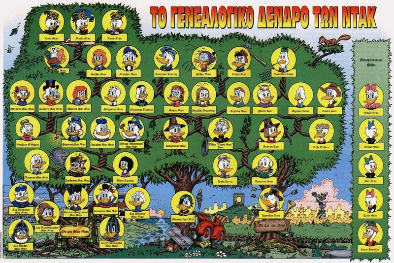Ο Καρλ Μπαρκς σχεδίασε ένα Γενεαλογικό Δέντρο των Ντακ για προσωπική του χρήση στα μέσα της δεκαετίας του 1950. Βασισμένοι σε αυτό πολλοί σχεδιαστές δημιούργησαν το δικό τους δέντρο. Το παραπάνω δέντρο βασίζεται σε ιδέα του Μπαρκς με το σχέδιο να είναι του Μάρκ Γουόρντεν.