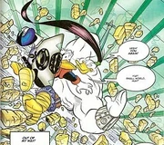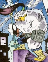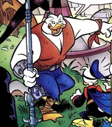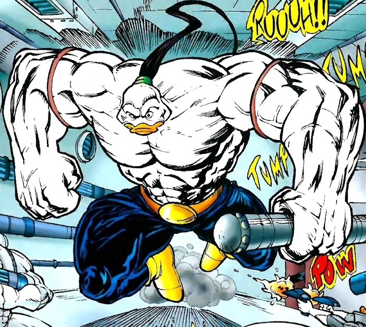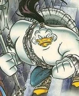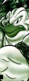 Πρόκειται για ένα μεγαλόσωμο παπί από άλλη διάσταση που έφτασε στη διάσταση του Φάντομ, εξαιτίας της ενεργοποίησης του παραλληλοσκάφους από τον Κόκορον τον Άρπαγα στην ιστορία Όταν πάγωσε ο ήλιος. Δεν φτάνει μόνος του, όμως, μαζί του παρασύρθηκε και ένα απαισιούργημα ονόματι Πλάσμα το οποίο προκάλεσε τις συνεχείς εξαφανίσεις Λιμνουπολιτών που έφεραν τον πανικό για ένα χρονικό διάστημα στην Λιμνούπολη μέχρι την εξουδετέρωσή του, από τον Φάντομ και τον Ορκ.
