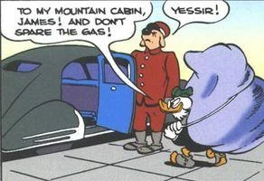 Ο Τζέημς υποδέχεται τον Ντόναλντ και τα ανίψια του στην έπαυλη του θείου Σκρουτζ. Αργότερα, οδηγεί τον Σκρουτζ και τα ανίψια του στο θησαυροφυλάκιο.