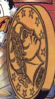 Το νόμισμα αναφέρεται σε μια δεκάρα του Σκρουτζ που εμφανίστηκε στην ομώνυμη ιστορία του Ρόσα.